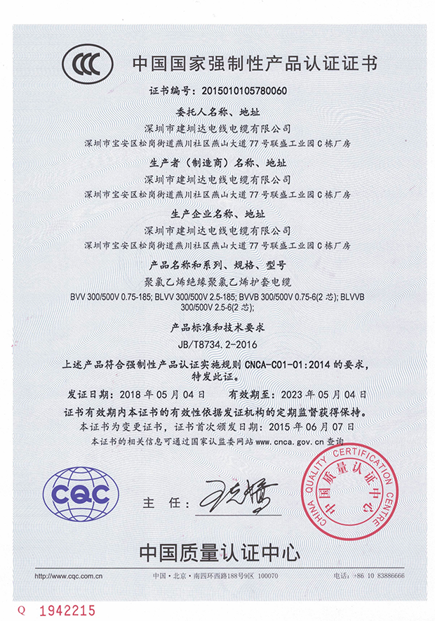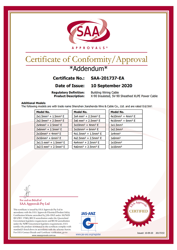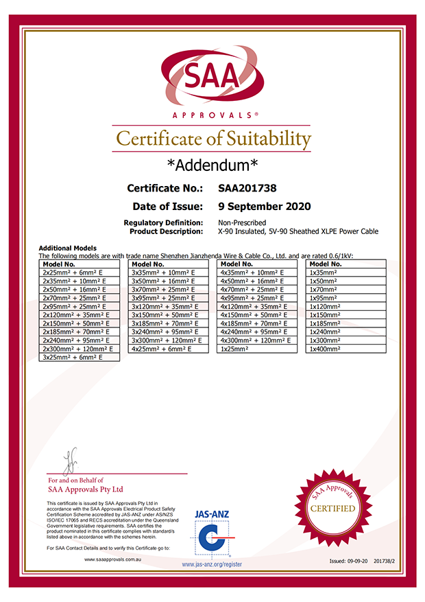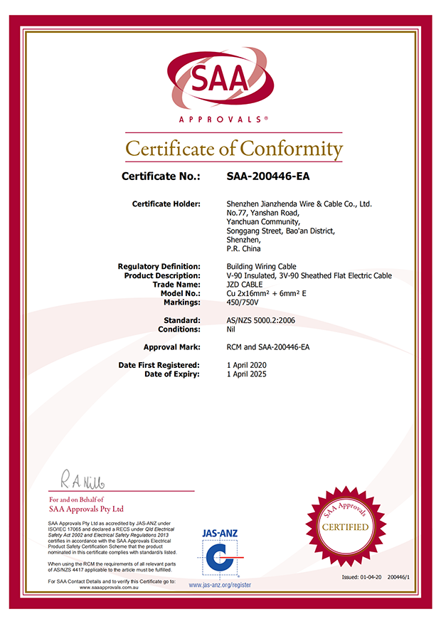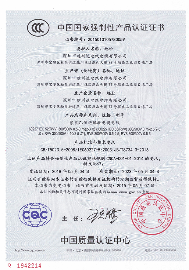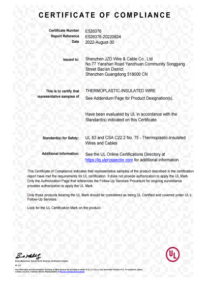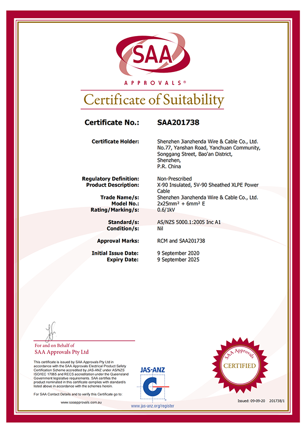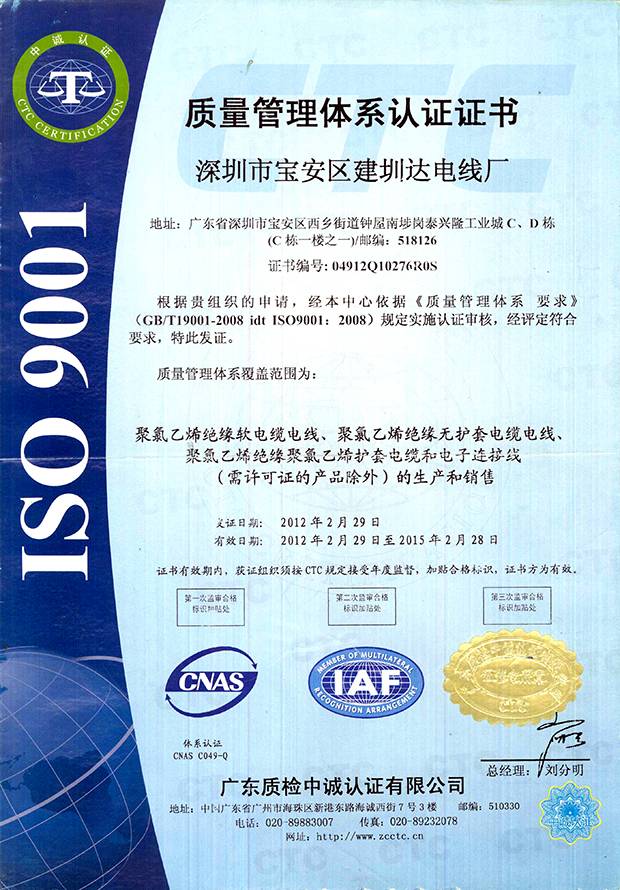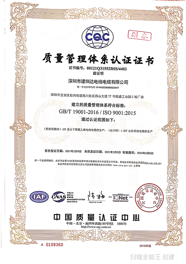 深圳建圳達電線電纜有限公司,成立于2000年,是一家電線電纜制造商,我們通過了世界各地不同市場的多數(shù)認證,如:CCC、RoHS、CB、SAA、TUV、VDE、PSE、BPS、UL、CSA。我們根據(jù)定制產(chǎn)品不斷更新新的認證。經(jīng)過數(shù)十年的發(fā)展,我們與來自世界各地的客戶建立了長期的合作關(guān)系。我們曾經(jīng)是菲律賓機場,,柬埔寨的電力站,美國的醫(yī)院,工廠,埃塞俄比亞的水電站項目。我們是一家值得信賴的電線供應(yīng)商。